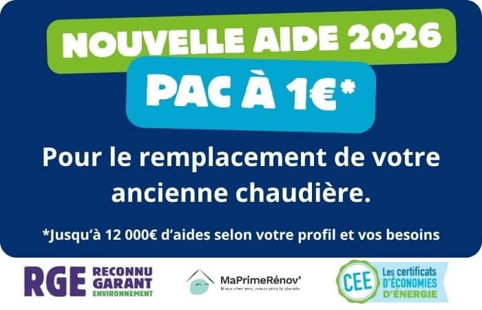 Notre bureau d’étude RGE optimise votre accès aux aides CEE et MaPrimeRénov’ pour l’installation d’une pompe à chaleur Air/Eau ; certains profils bénéficient d’un reste à charge de 1€. Un simple appel permet de le vérifier.